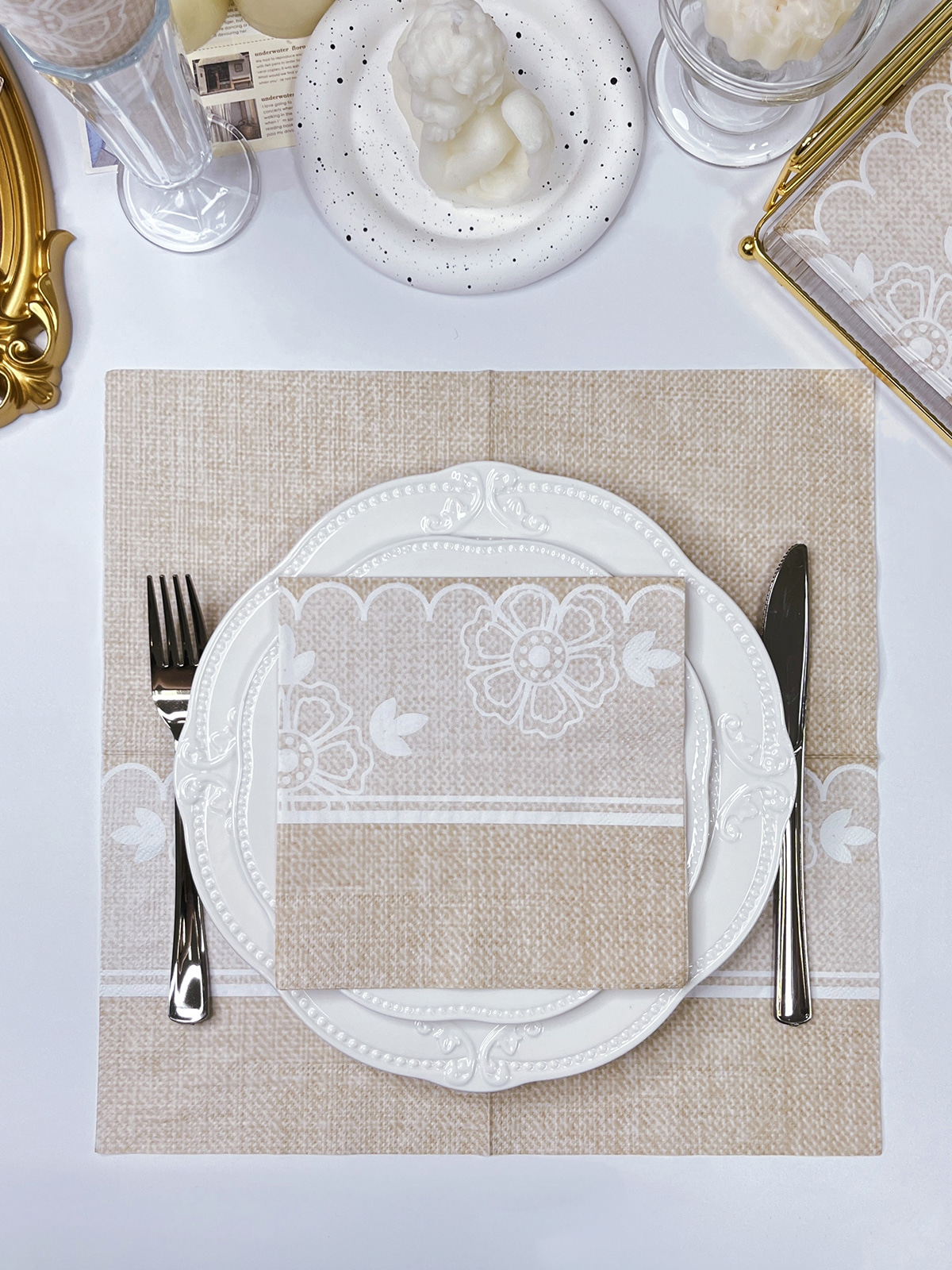 Napkin Kertas Bercetak Bunga Biru ini dicetak pada empat sisi dengan bunga putih yang cantik pada latar belakang biru, dan bahagian tepinya dihiasi dengan renda putih, yang lebih elegan dan menambah rasa yang berbeza pada meja anda.