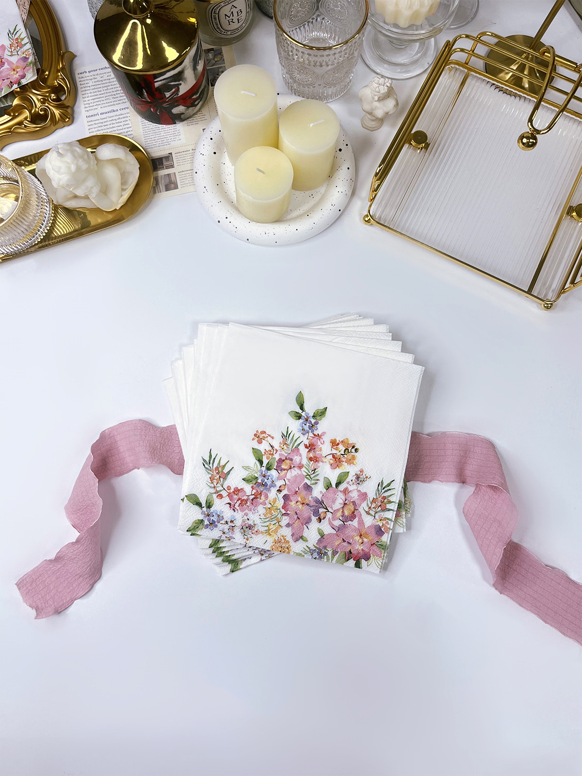 Napkin Kertas Berwarna-warni Percetakan Bunga Terang Musim Bunga ini direka dengan bunga cat air yang halus, yang elegan dan cantik, napkin ini pasti akan menyerlahkan meja anda dan meninggalkan kesan mendalam pada tetamu anda.